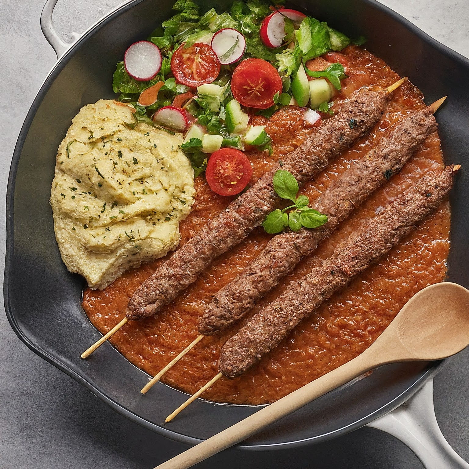 5.Mit Fladenbrot, Salat und Joghurtsauce servieren.