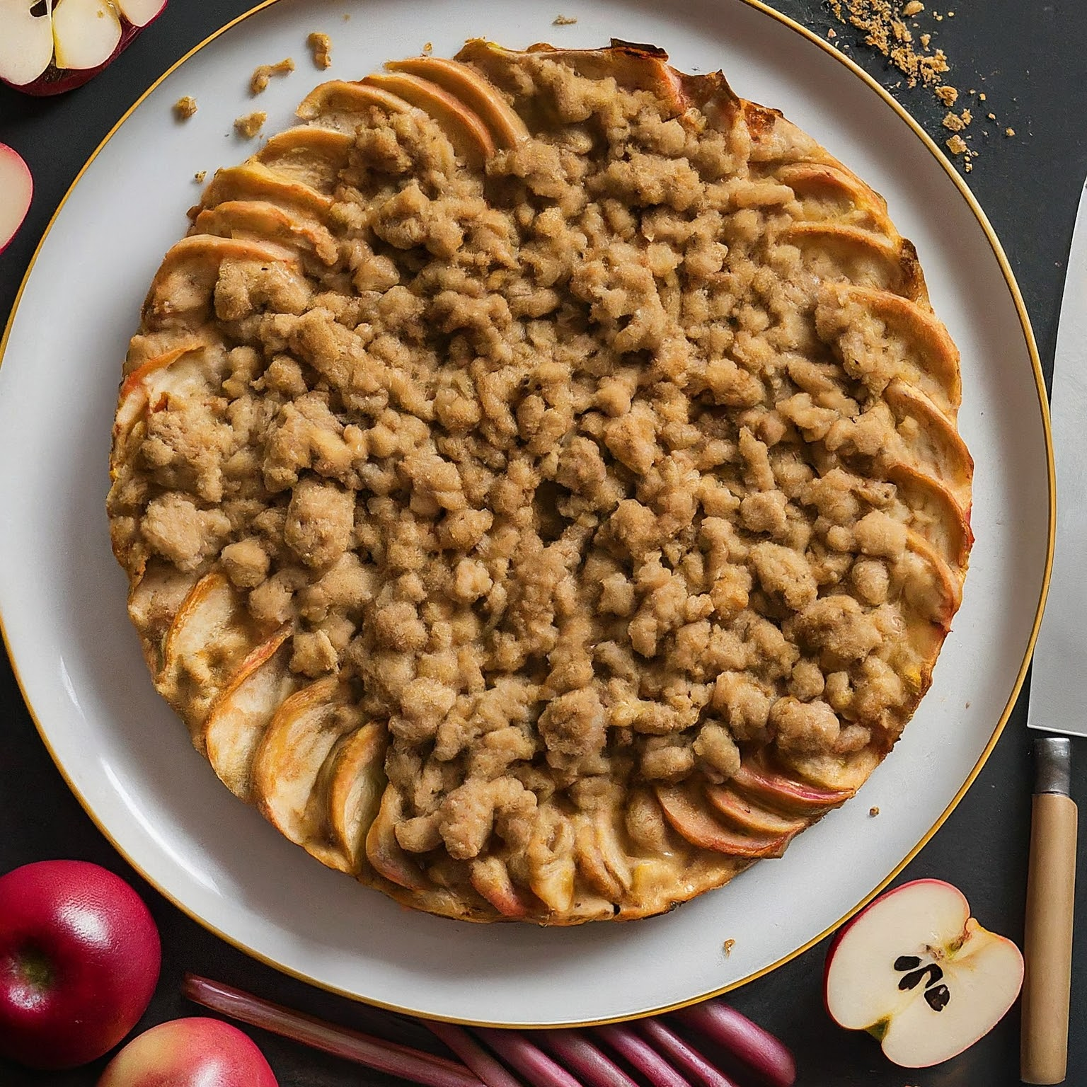 Ein köstlicher Apfel Rhabarber Kuchen mit knusprigen Zimtstreuseln - die perfekte Kombination aus süß und sauer!