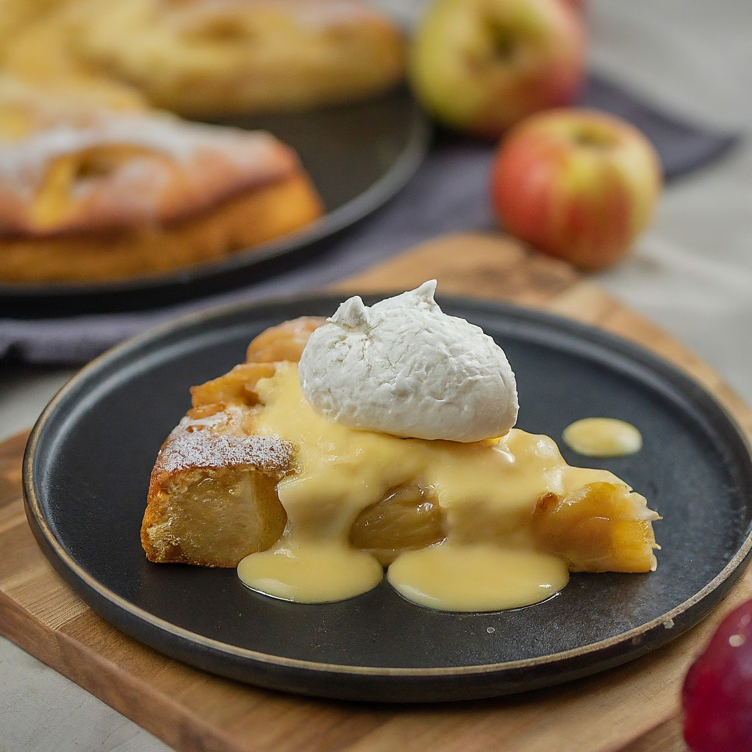 Ein schneller und einfacher Apfelkuchen mit cremigem Vanillepudding – perfekt für jeden Anlass!