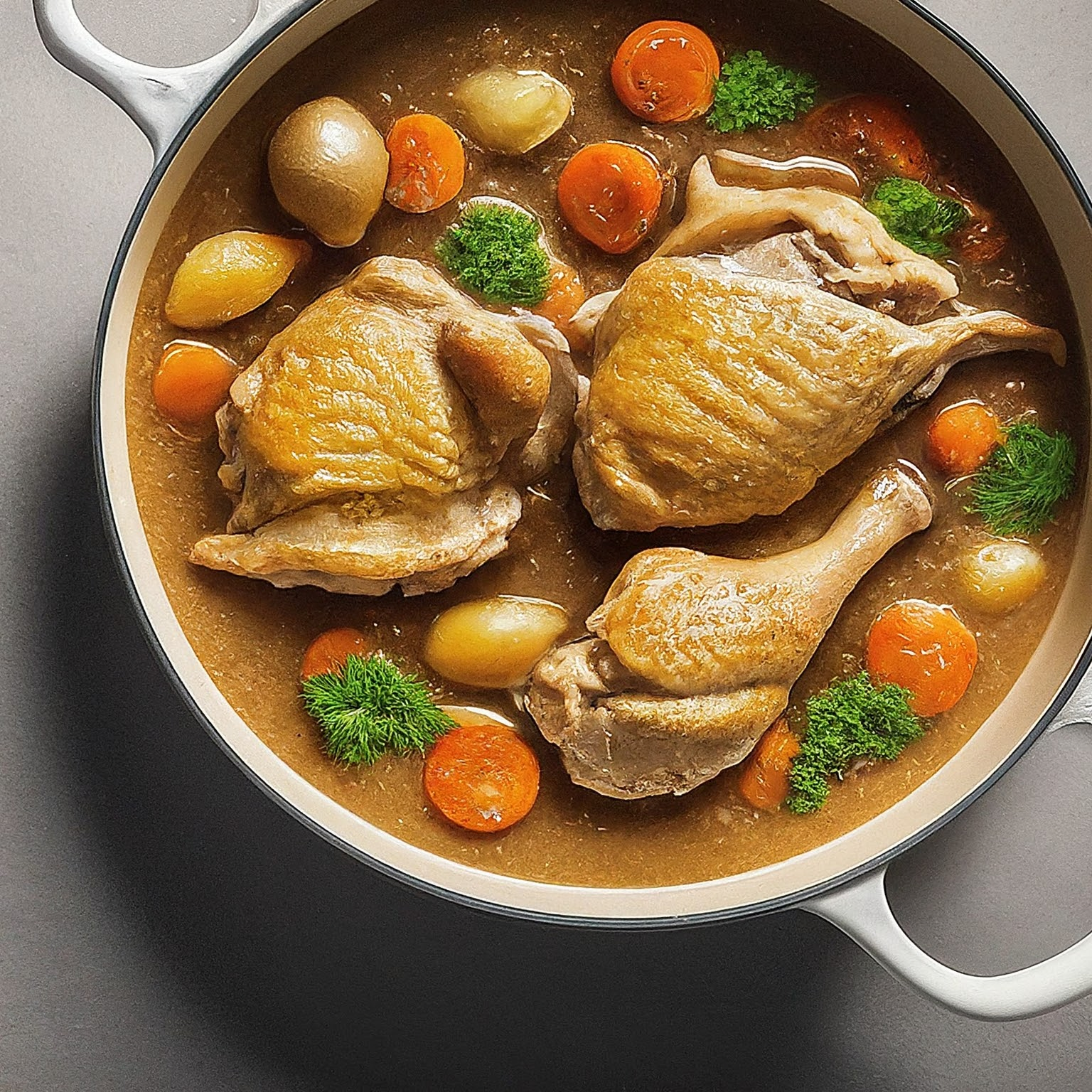 Ein klassischer Geflügelfond, einfach zubereitet und voller Geschmack. Perfekt als Basis für Suppen, Saucen und Risotto.