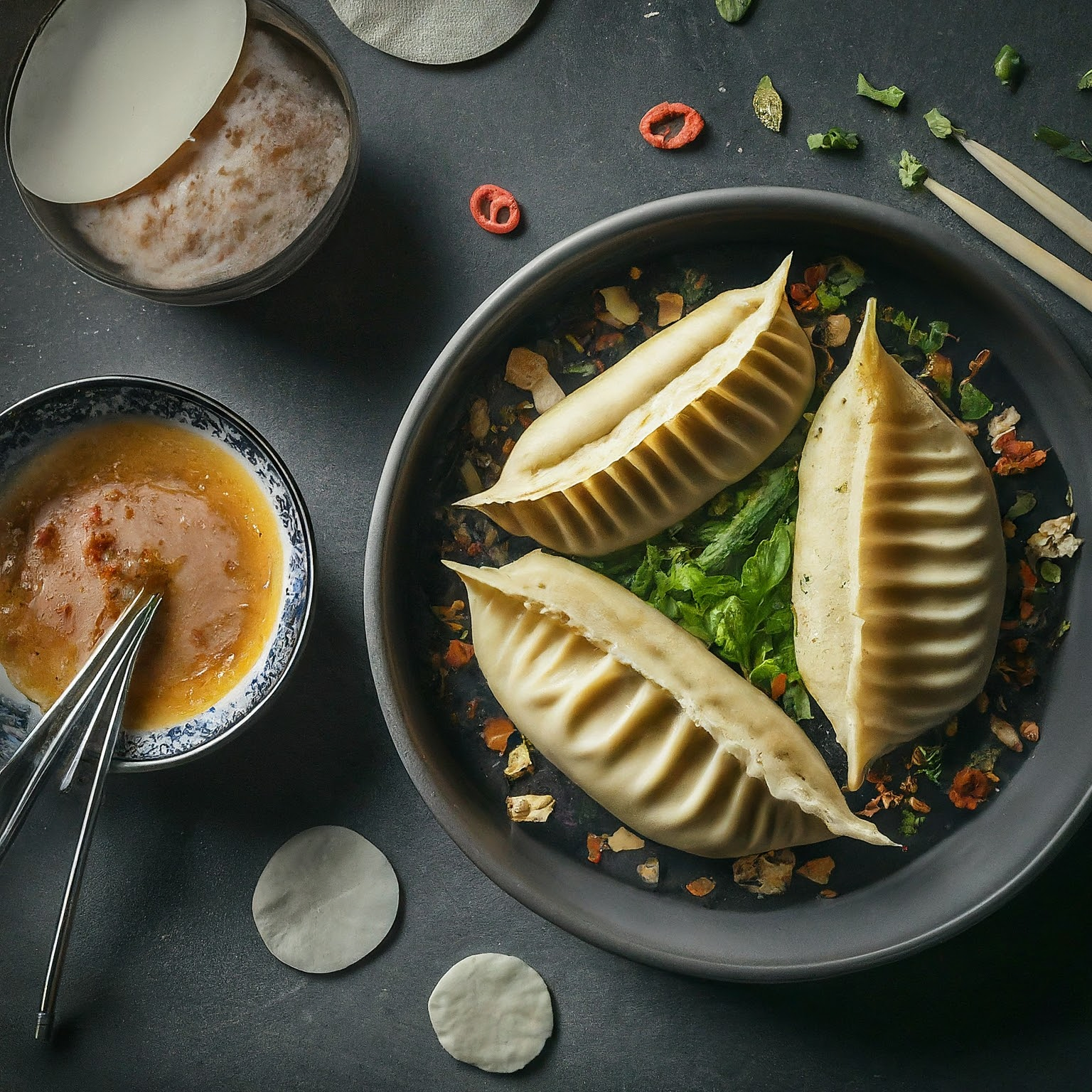 6.Die Jiaozi heiß servieren, z.B. mit Sojasauce und Chiliöl.