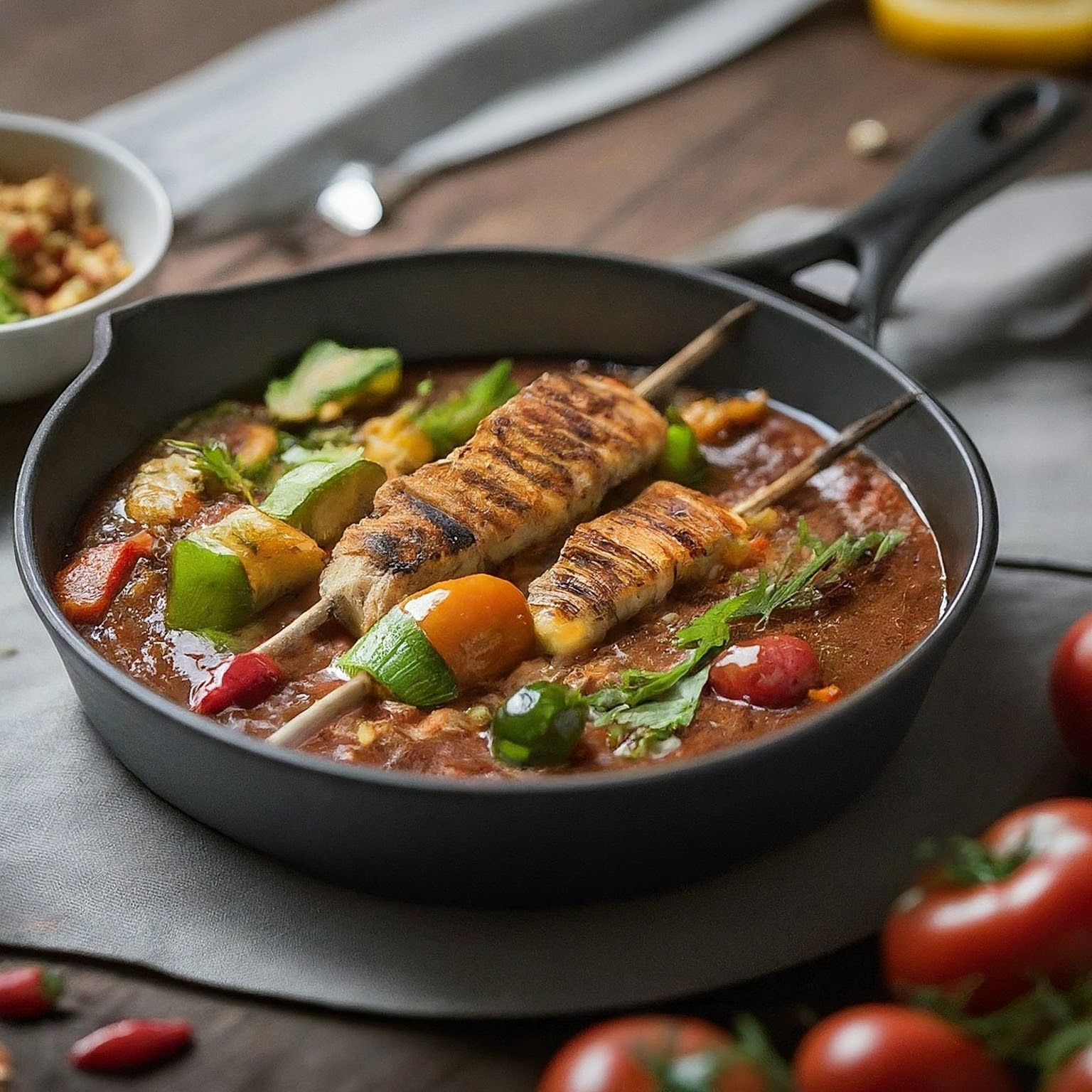 Entdecken Sie den Geschmack des Mittelmeers mit diesen außergewöhnlichen Grillspießen! Zarte Hähnchenstücke, mariniert in einer aromatischen Mischung aus Kräutern und Gewürzen, treffen auf saftige Paprika, Zwiebeln und Zucchini. Ein Fest für die Sinne – perfekt für warme Sommerabende!