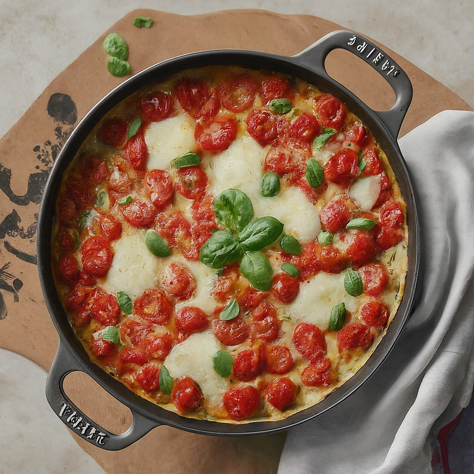Ein cremiger Nudelauflauf mit Tomaten und Mozzarella, perfekt für ein schnelles und leckeres Abendessen.
