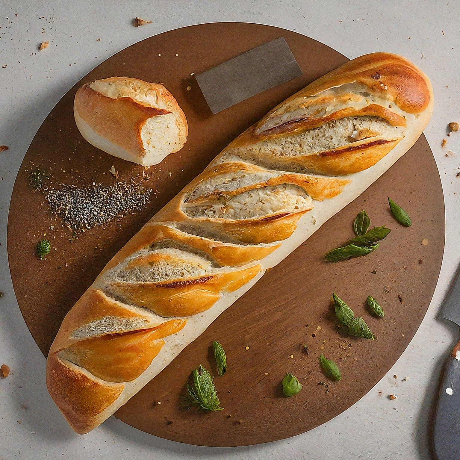 9.Die Baguettes mit einem scharfen Messer mehrmals schräg einschneiden.
