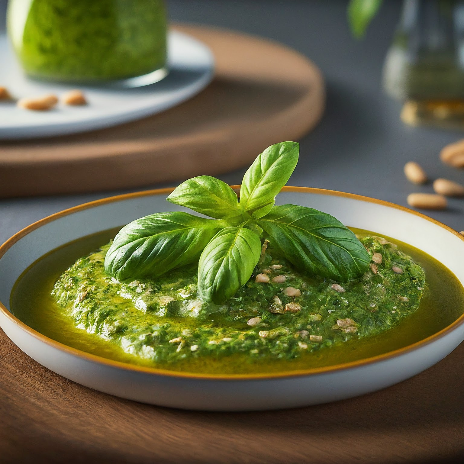 Ein aromatisches Pesto aus zarten Basilikumblüten, perfekt für Pasta, Salate und Sandwiches.