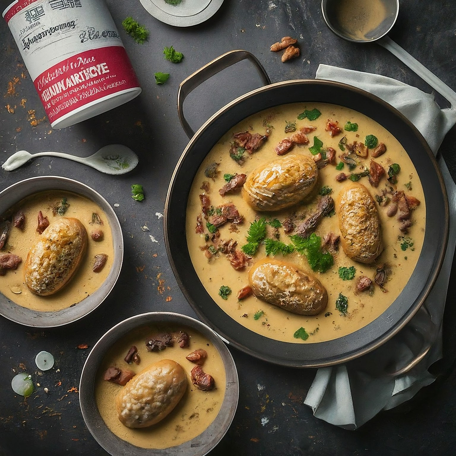 4.Mit Milch ablöschen und unter ständigem Rühren aufkochen lassen, bis die Sauce eindickt.
