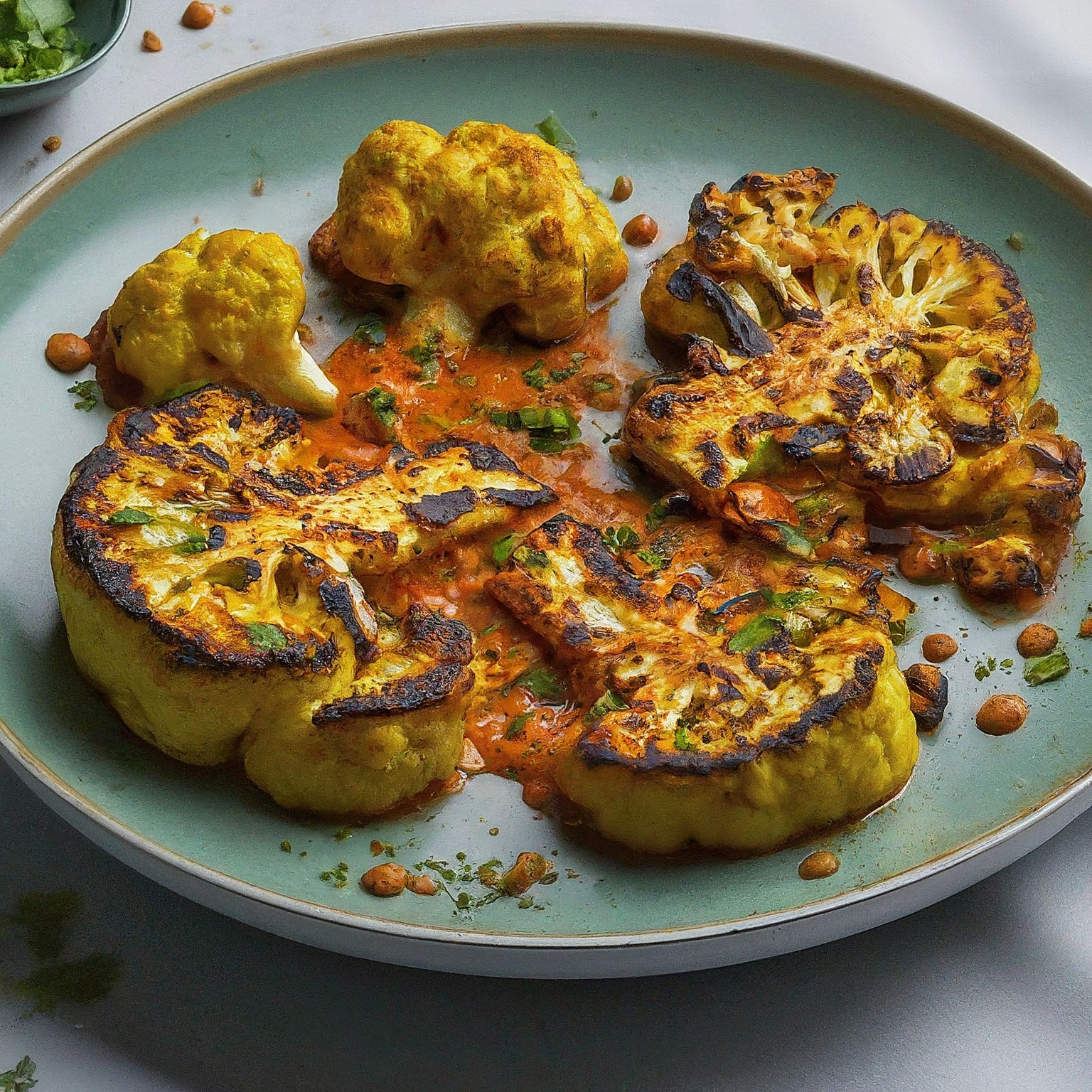 Würziger Blumenkohl aus dem Ofen mit einer aromatischen Tandoori Marinade. Ein einfaches und gesundes Rezept, perfekt als Beilage oder vegetarisches Hauptgericht.