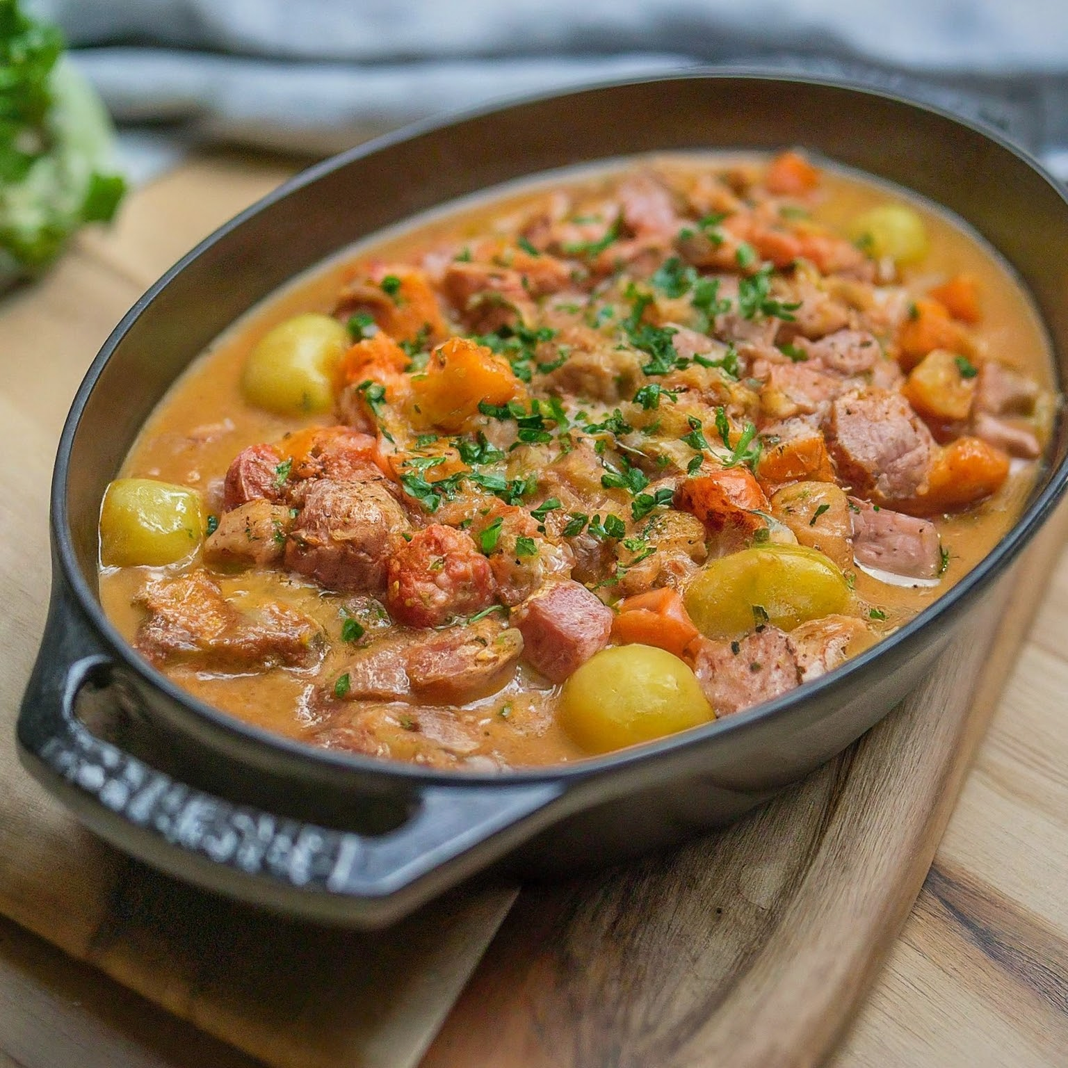 Mein Bohneneintopf A La Mike ist ein deftiger, wärmender Eintopf, perfekt für kalte Tage. Mit würzigem Speck und aromatischen Kräutern verfeinert, ist er ein echter Genuss. Dieses Rezept ist einfach zuzubereiten und eignet sich hervorragend für ein gemütliches Abendessen mit der Familie.