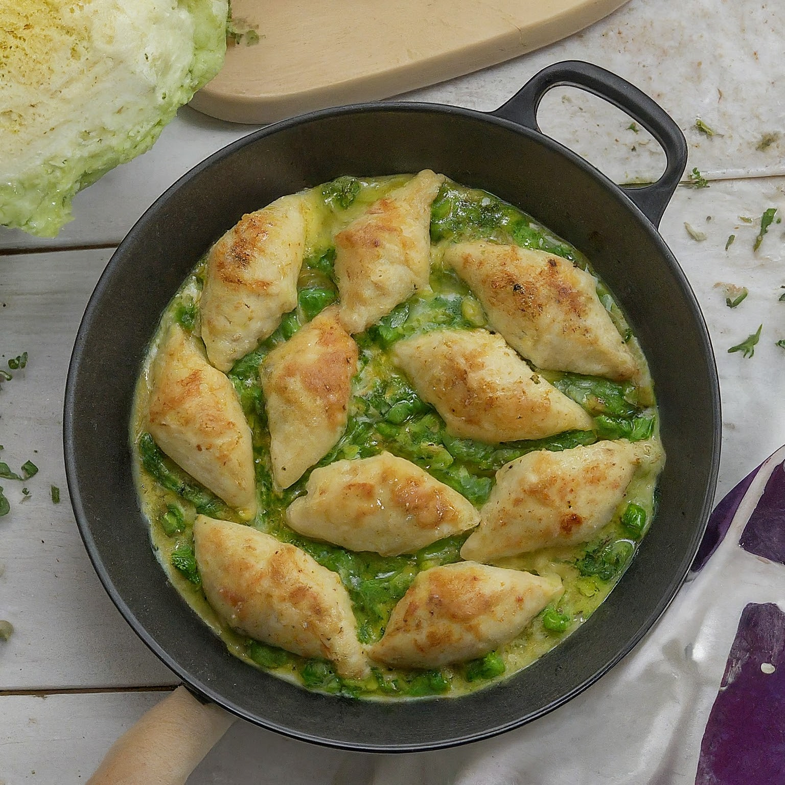| 3. | Grüne Bohnen hinzufügen und kurz mitdünsten. |