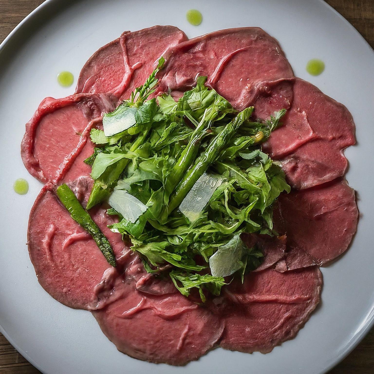 Ein erfrischendes und elegantes Carpaccio Di Manzo mit knackigem Stangenspargel. Perfekt als Vorspeise oder leichtes Hauptgericht.