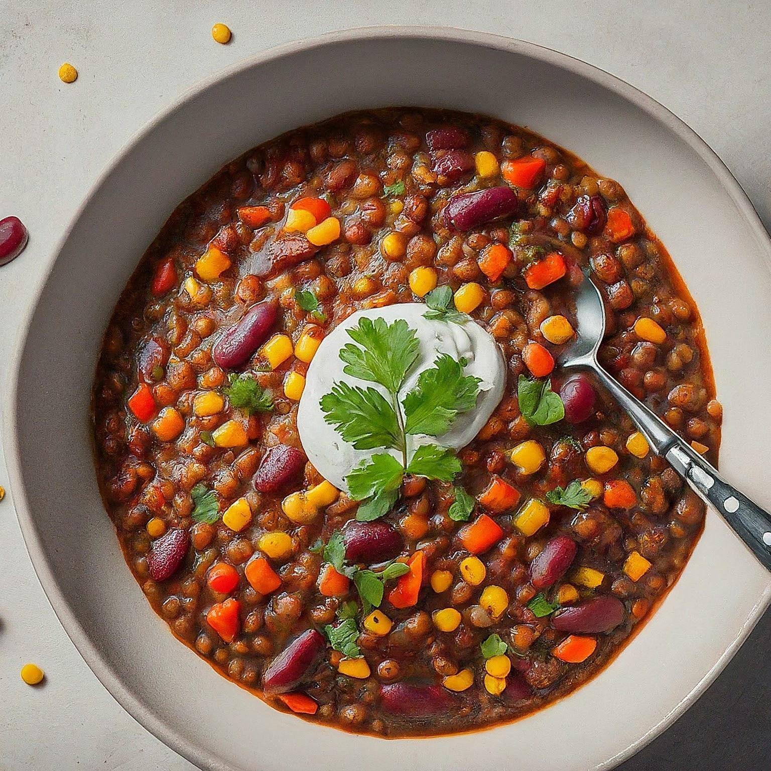 Ein herzhaftes Chili Sin Carne mit roten Linsen, perfekt für kalte Tage. Einfach zuzubereiten und voller Geschmack!