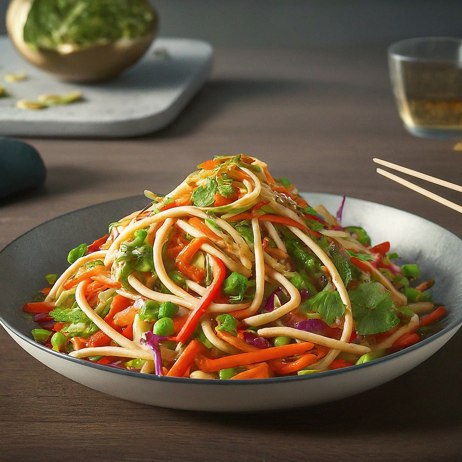 Ein erfrischender und leichter chinesischer Nudelsalat mit knackigem Gemüse und einer süß-sauren Sauce. Perfekt für ein schnelles Mittagessen oder als Beilage.