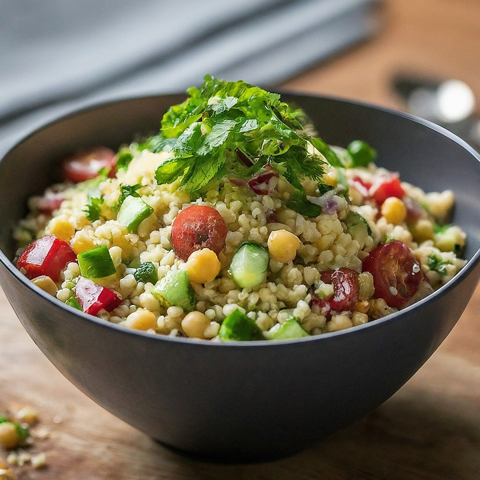 Ein würziger und erfrischender Couscous Salat mit knackigem Gemüse und einem orientalischen Dressing. Perfekt als Beilage oder leichte Hauptmahlzeit.