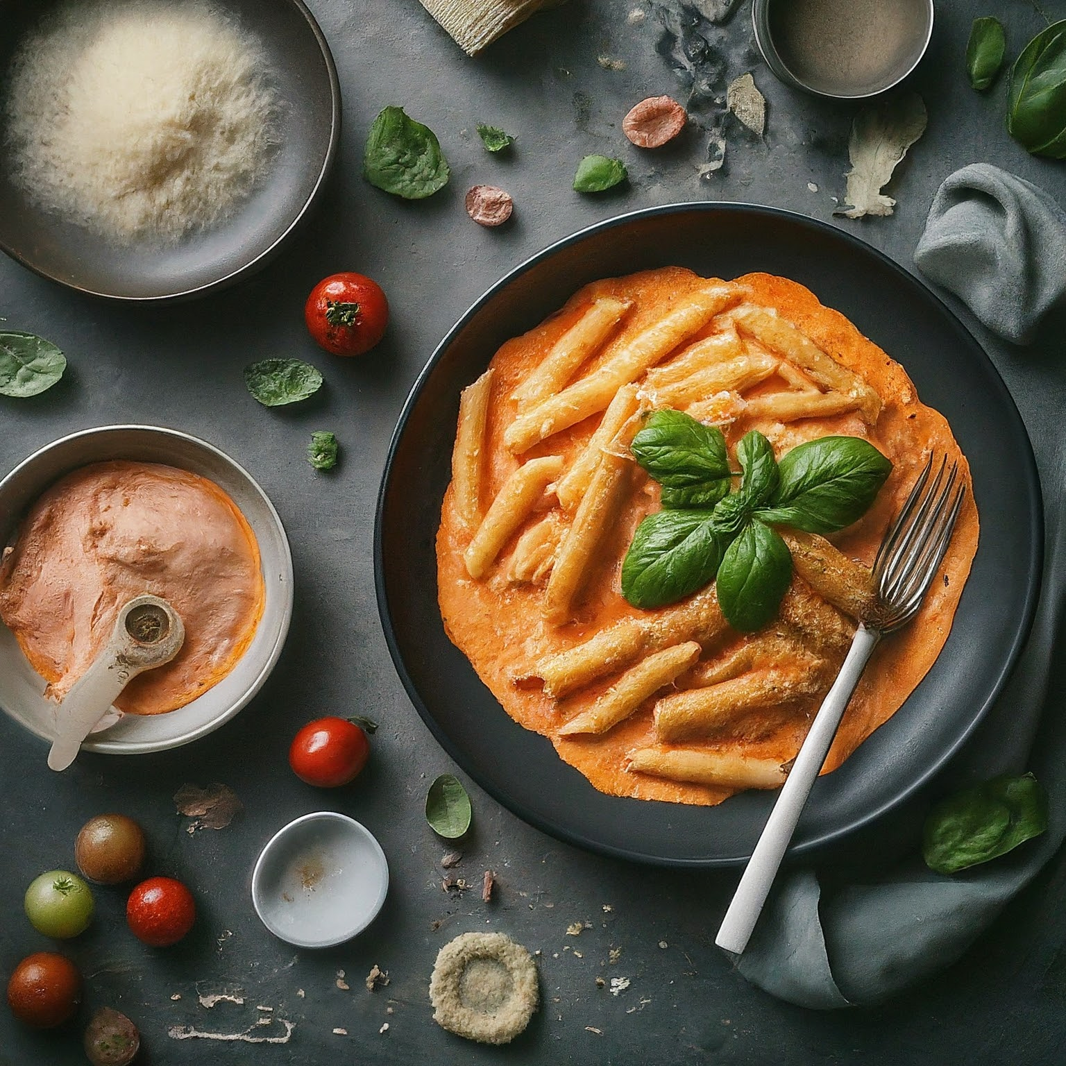 Diese cremige Tomaten-Pasta ist schnell zubereitet und ein echter Genuss! Frisches Basilikum verleiht dem Gericht eine besondere Note. Perfekt für ein schnelles Abendessen oder einen gemütlichen Mittagssnack.