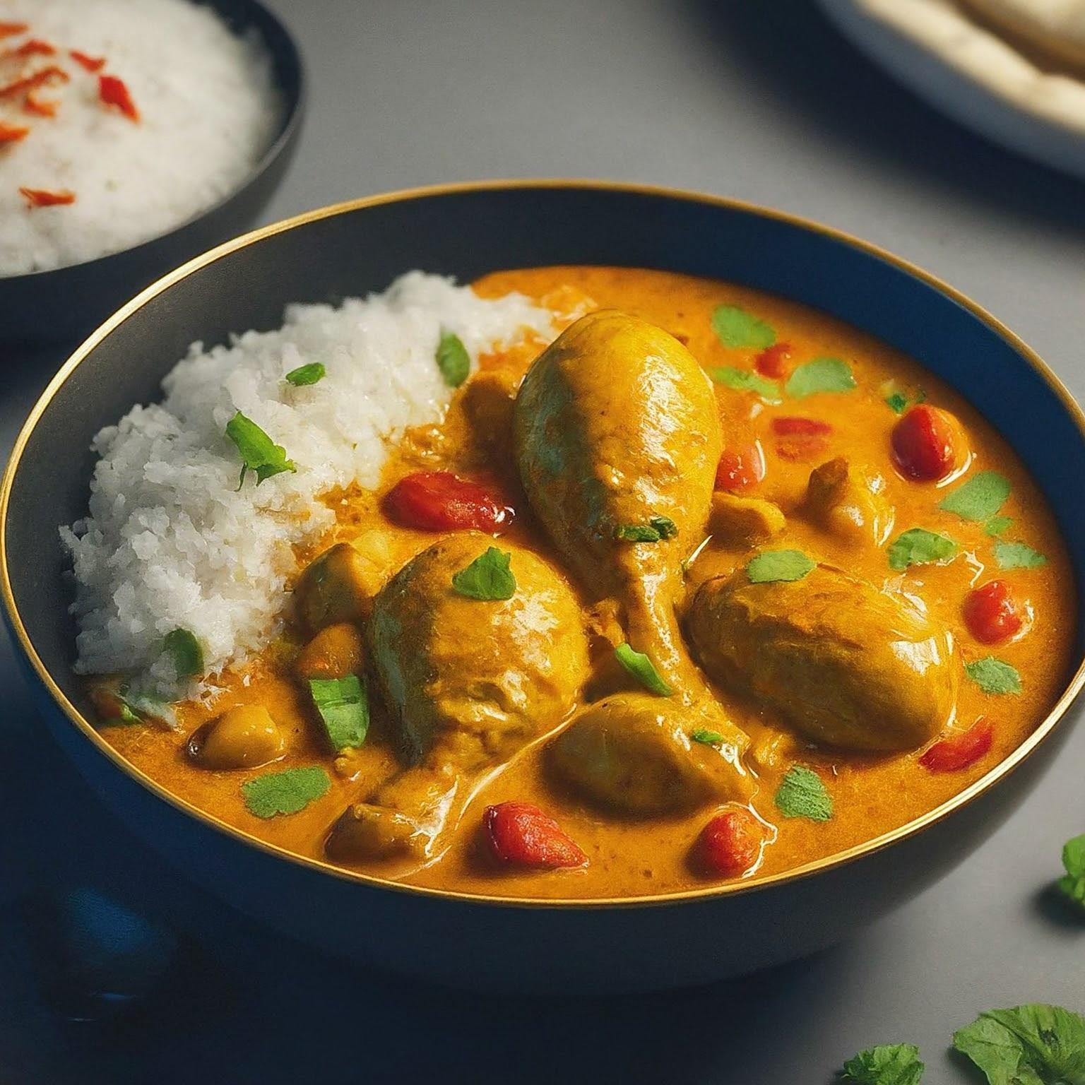 Dieses cremige Chicken Curry ist ein echter Genuss! Zartes Hähnchenfleisch in einer aromatischen Kokosmilch-Sauce mit Curry, Ingwer und Knoblauch. Perfekt für ein schnelles Abendessen oder zum Vorkochen.