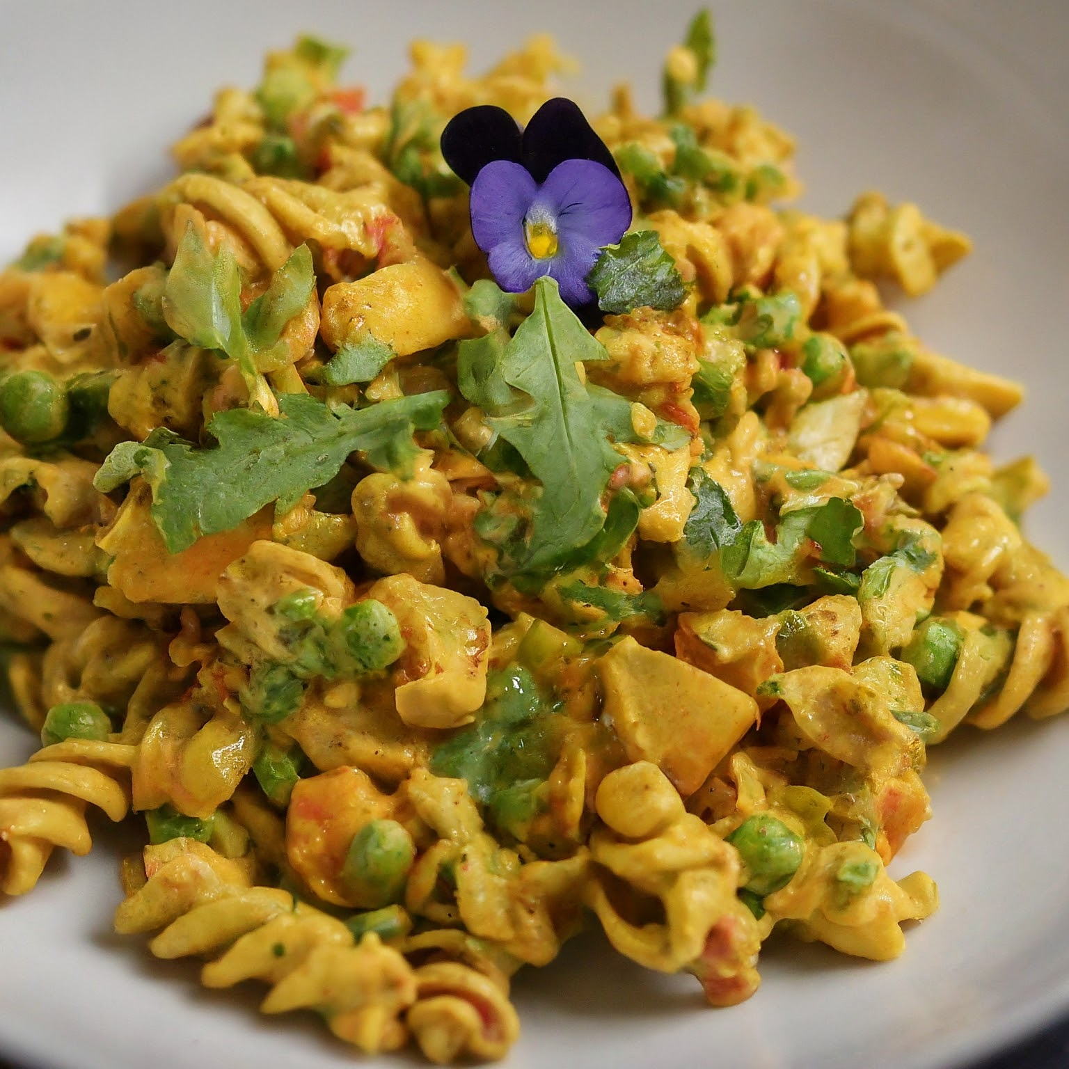 Ein erfrischender Curry Nudelsalat – perfekt für den Sommer.
