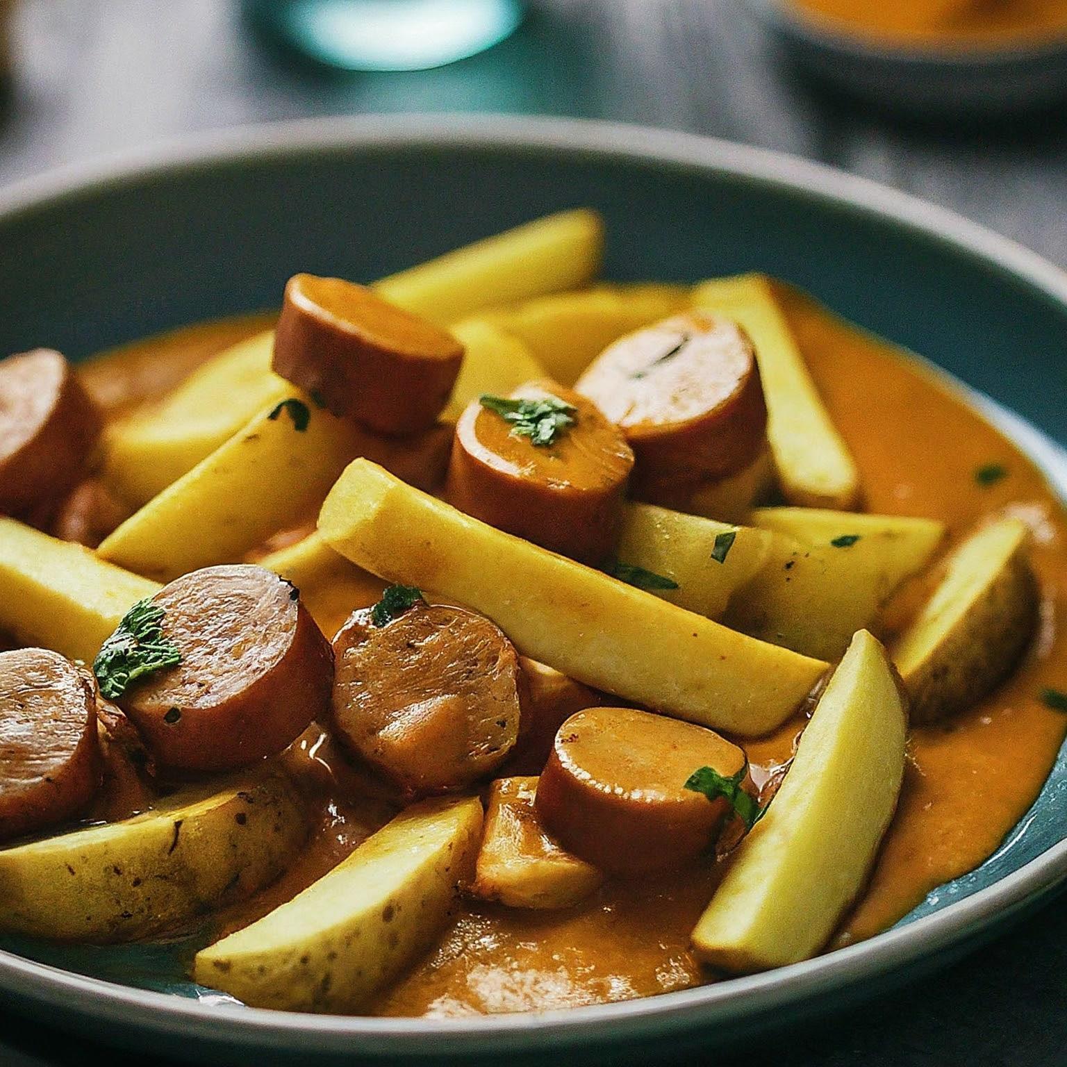 Die klassische Currywurst mit knusprigen Pommes – ein deutscher Kult-Snack! Dieses Rezept ist einfach und schnell zubereitet und garantiert ein Geschmackserlebnis wie vom Imbiss.