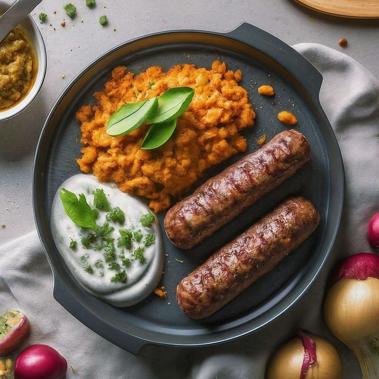5.Heiß servieren, idealerweise mit Ajvar, Zwiebeln und Fladenbrot.