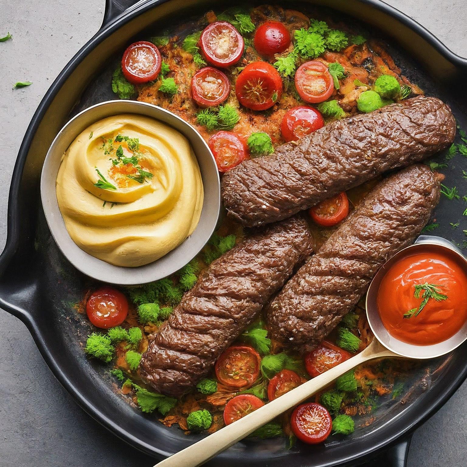 | 1. | Rinder- und Lammhackfleisch in eine Schüssel geben. |