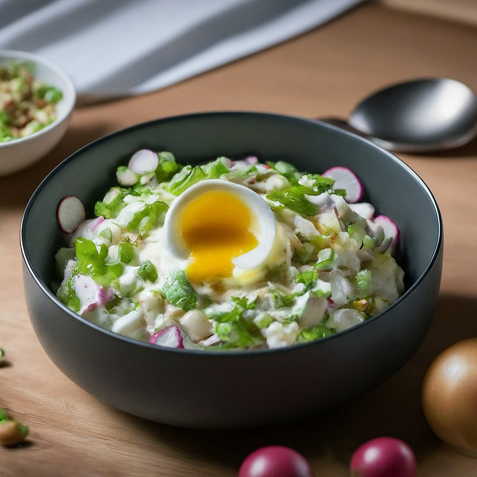 Dieser leichte Eiersalat ohne Mayo ist perfekt für ein schnelles Mittagessen, einen leichten Snack oder als Beilage zum Grillen. Die cremige Konsistenz wird durch Quark und Joghurt erreicht, wodurch der Salat gesund und kalorienarm bleibt. Lass dich von diesem erfrischenden Rezept überraschen!