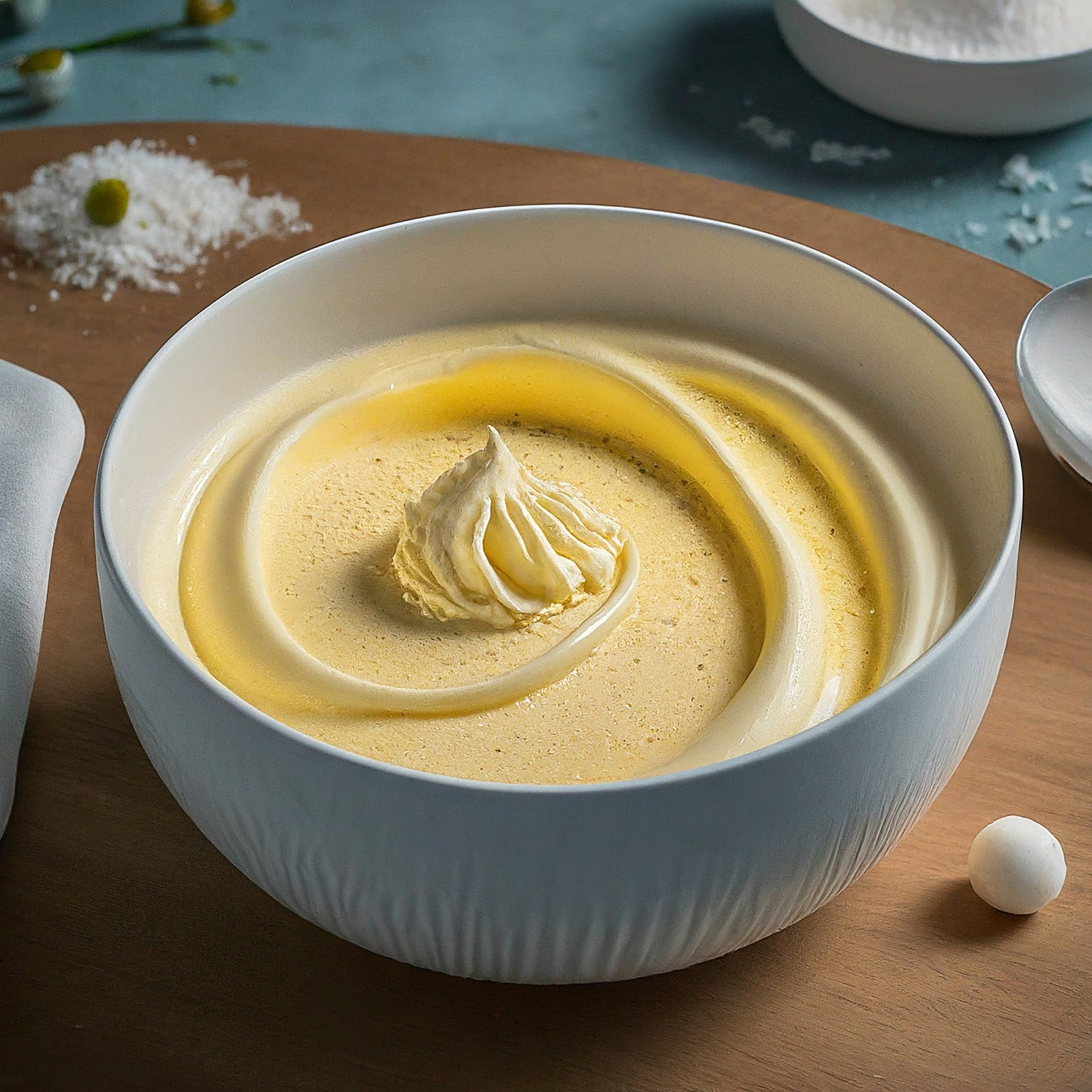 4.Die Eigelbmischung vorsichtig unter die Sahne heben.