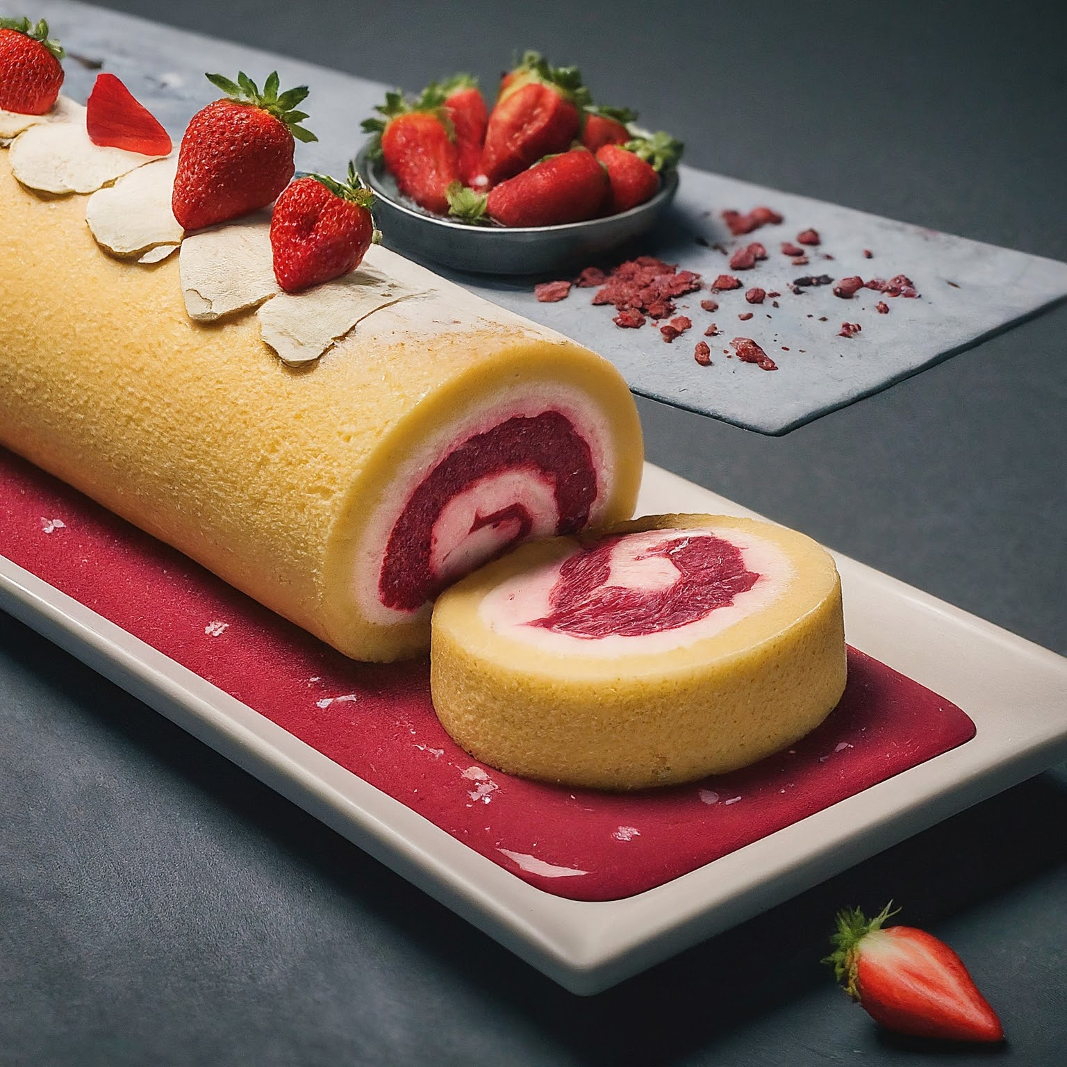Eine klassische Biskuitrolle mit frischer Erdbeerfüllung – einfach und lecker!