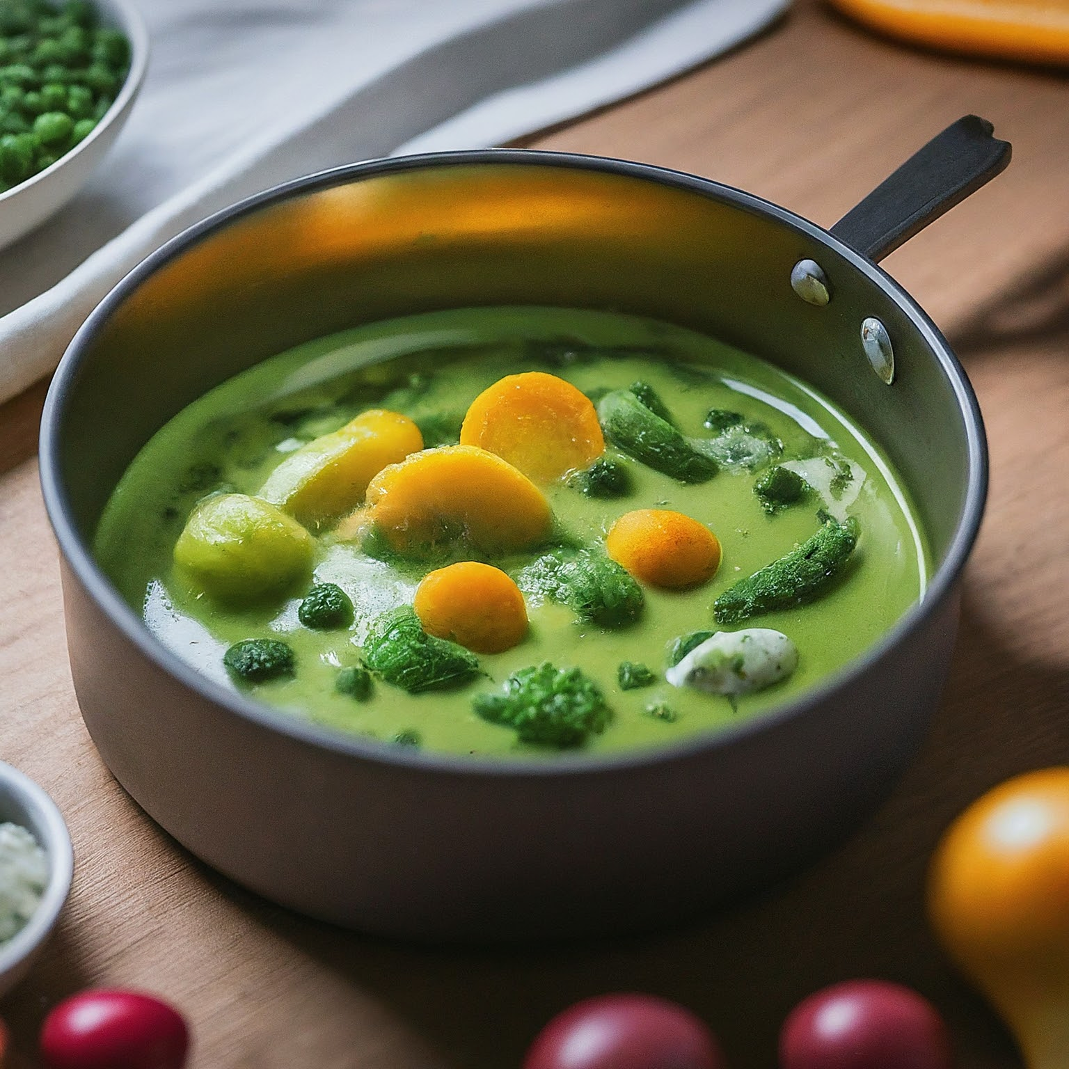 Dieses cremige Erbsen-Möhren-Gemüse ist ein schnelles und einfaches Gericht, perfekt als Beilage oder leichte Hauptmahlzeit. Mit wenigen Zutaten zauberst du ein wunderbar aromatisches Gemüse, das sowohl Kinder als auch Erwachsene lieben werden. Die cremige Konsistenz entsteht durch das Pürieren eines Teils des Gemüses.