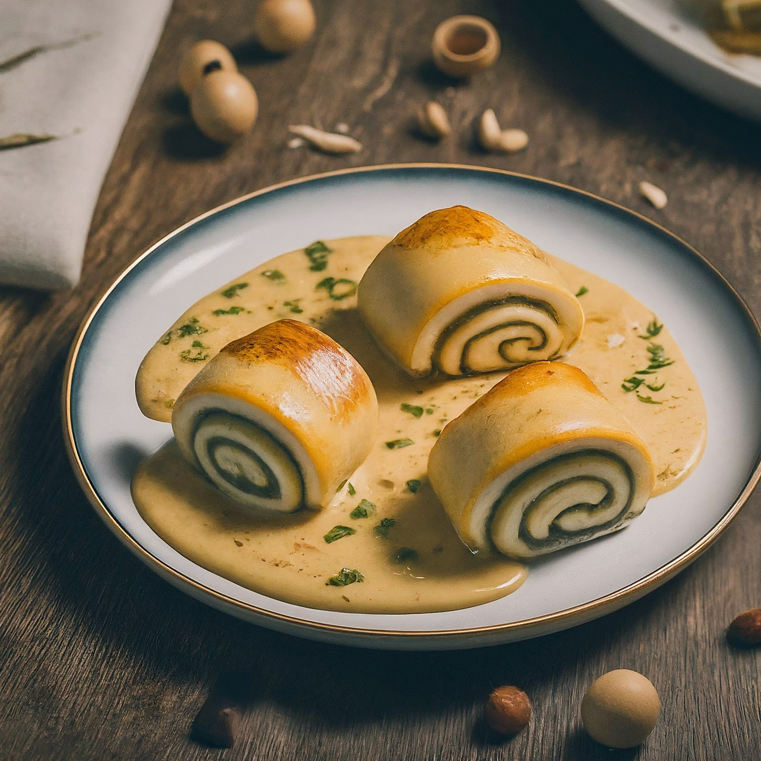 5.Die Seiten des Reispapiers nach innen klappen und von unten her aufrollen.