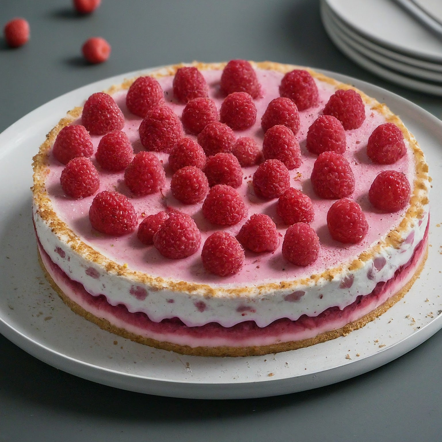 Eine erfrischende und leichte Sommertorte mit saftigen Himbeeren, perfekt für warme Tage.