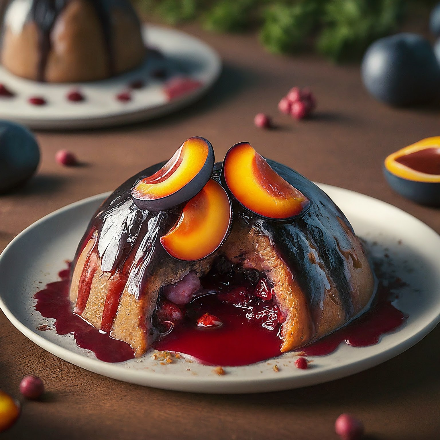 Ein klassischer Plum Pudding, der an Weihnachten nicht fehlen darf. Mit saftigen Trockenfrüchten, Rum und weihnachtlichen Gewürzen.
