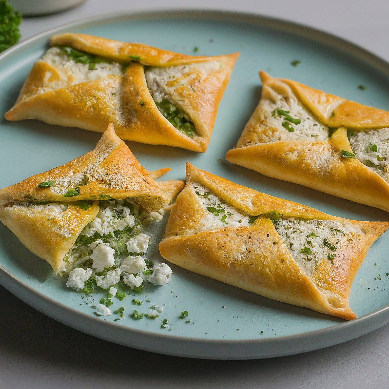 Knusprige Blätterteigtaschen gefüllt mit cremigem Feta, frischen Kräutern – ein einfacher und unwiderstehlicher Snack!