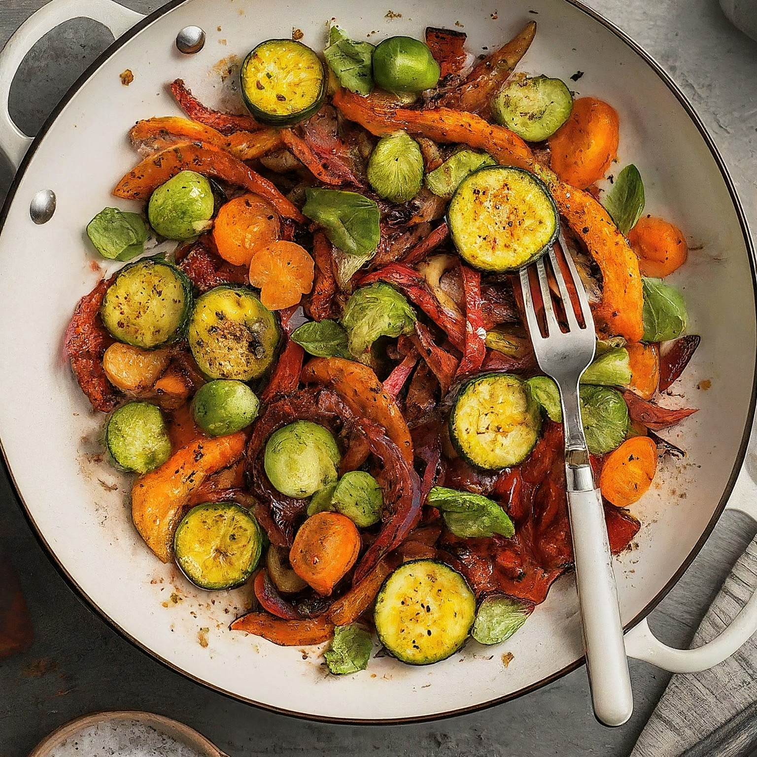 Eine schnelle und einfache Gemüsepfanne mit Feta aus der Heißluftfritteuse - perfekt für ein leichtes Abendessen!