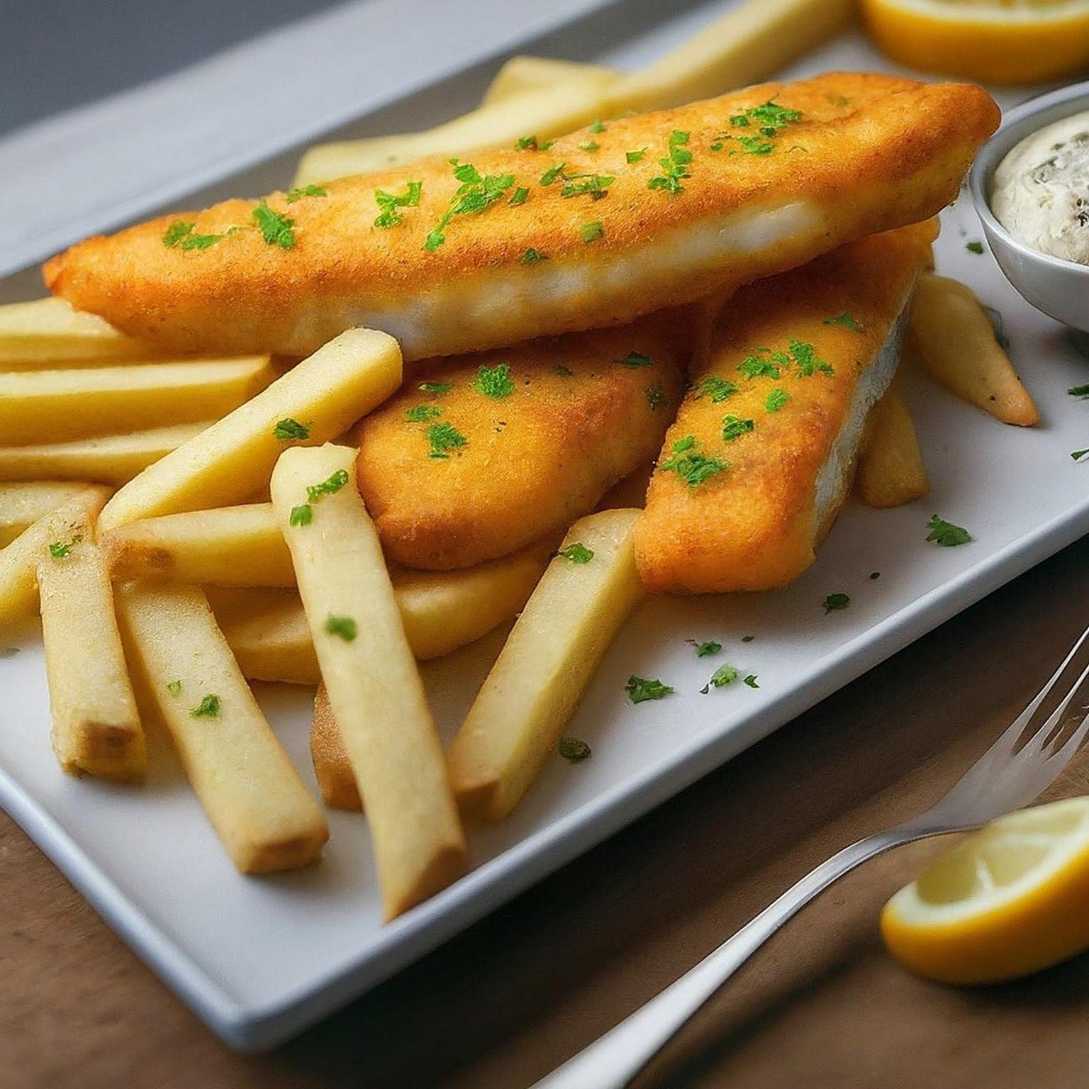 Knuspriger Fisch und goldgelbe Kartoffelstifte mit selbstgemachter Tartar Sauce – ein echter Klassiker!