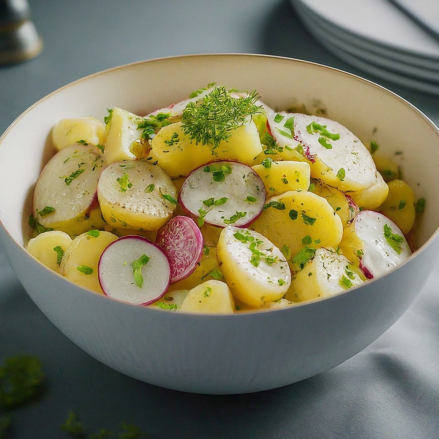 Der original fränkische Kartoffelsalat, mit viel Zwiebeln und einer deftigen Brühe. Perfekt zu Bratwürsten oder Schäufele. Ein echter Klassiker der fränkischen Küche!