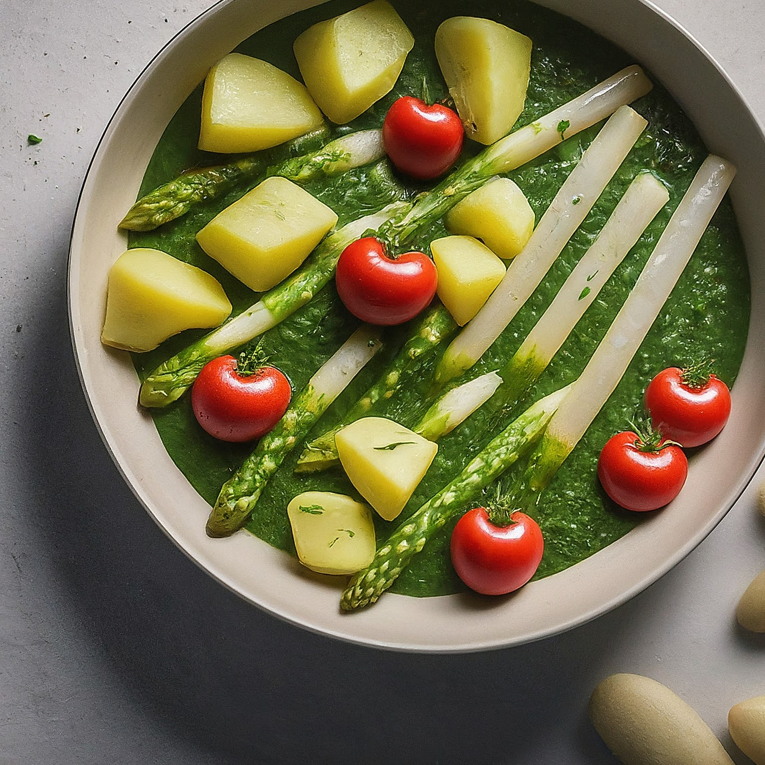 Dieses Rezept für gebratenen grünen Spargel mit Kirschtomaten und Kartoffelchen ist ein echter Frühlingsklassiker. Die Kombination aus zartem Spargel, süßen Tomaten und knusprigen Kartoffeln ist einfach unwiderstehlich. Ein schnelles und einfaches Gericht, perfekt für ein leichtes Mittag- oder Abendessen.