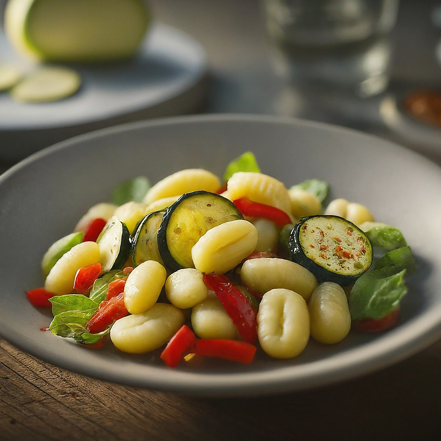 Ein leichter und erfrischender Gnocchi Salat mit gebratener Zucchini und Paprika, perfekt für den Sommer.