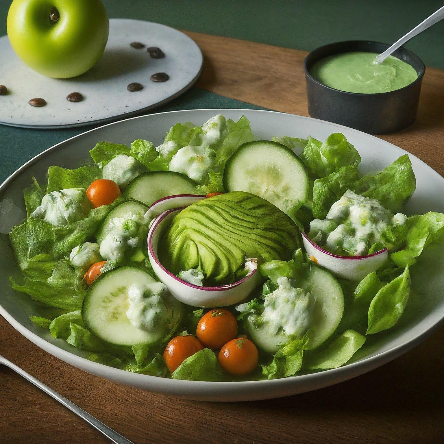 | 4. | Die Green Goddess Sauce über den Salat geben und gut vermengen. |