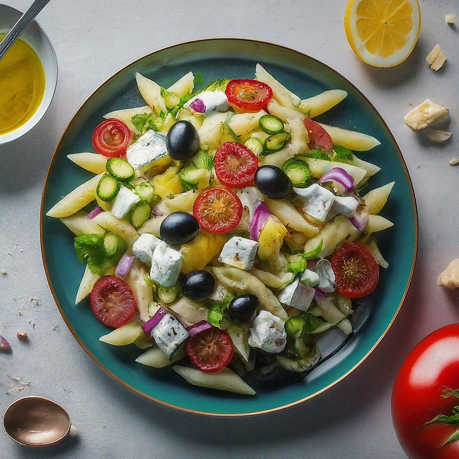 Ein erfrischender griechischer Kritharaki Salat mit sonnengereiften Tomaten, Gurken, Oliven und Feta. Perfekt als Beilage oder leichtes Sommergericht.