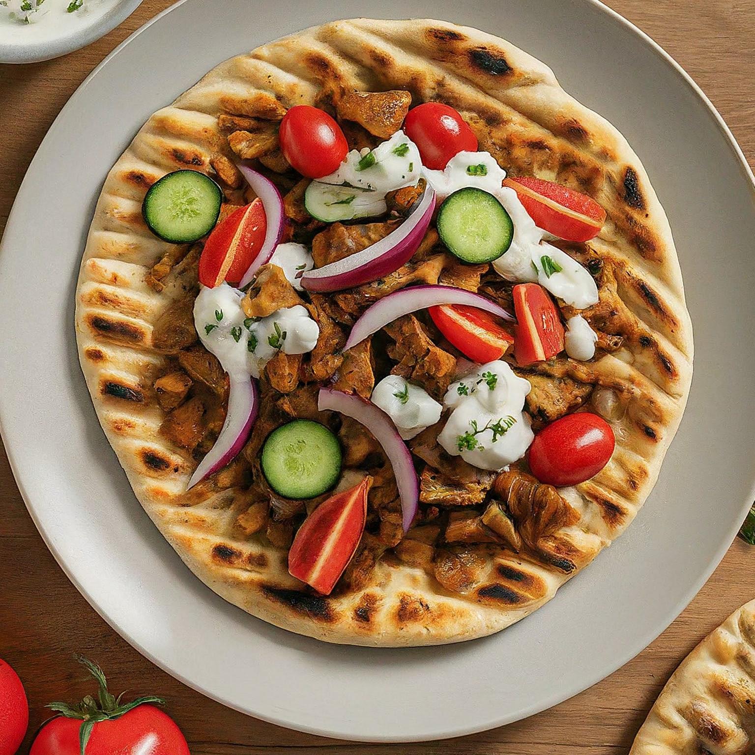 | 6. | Gyros vom Spieß schneiden und mit Pita, Tzaziki, Salat und Pommes servieren. |