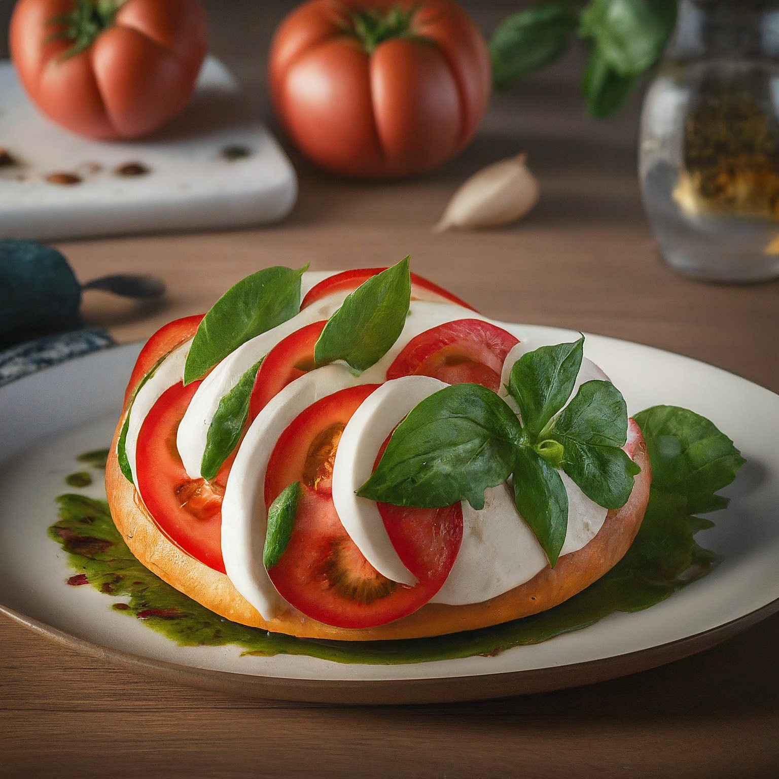 | 8. | Mit frischen Basilikumblättern garnieren und optional mit Balsamico-Creme beträufeln. |