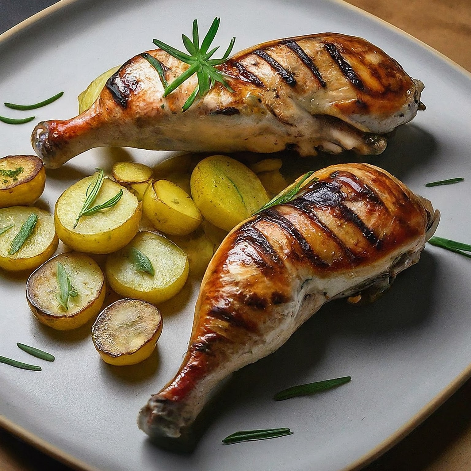 Knuspriges Hähnchen und aromatische Rosmarinkartoffeln vom Grill - ein perfektes Sommergericht!