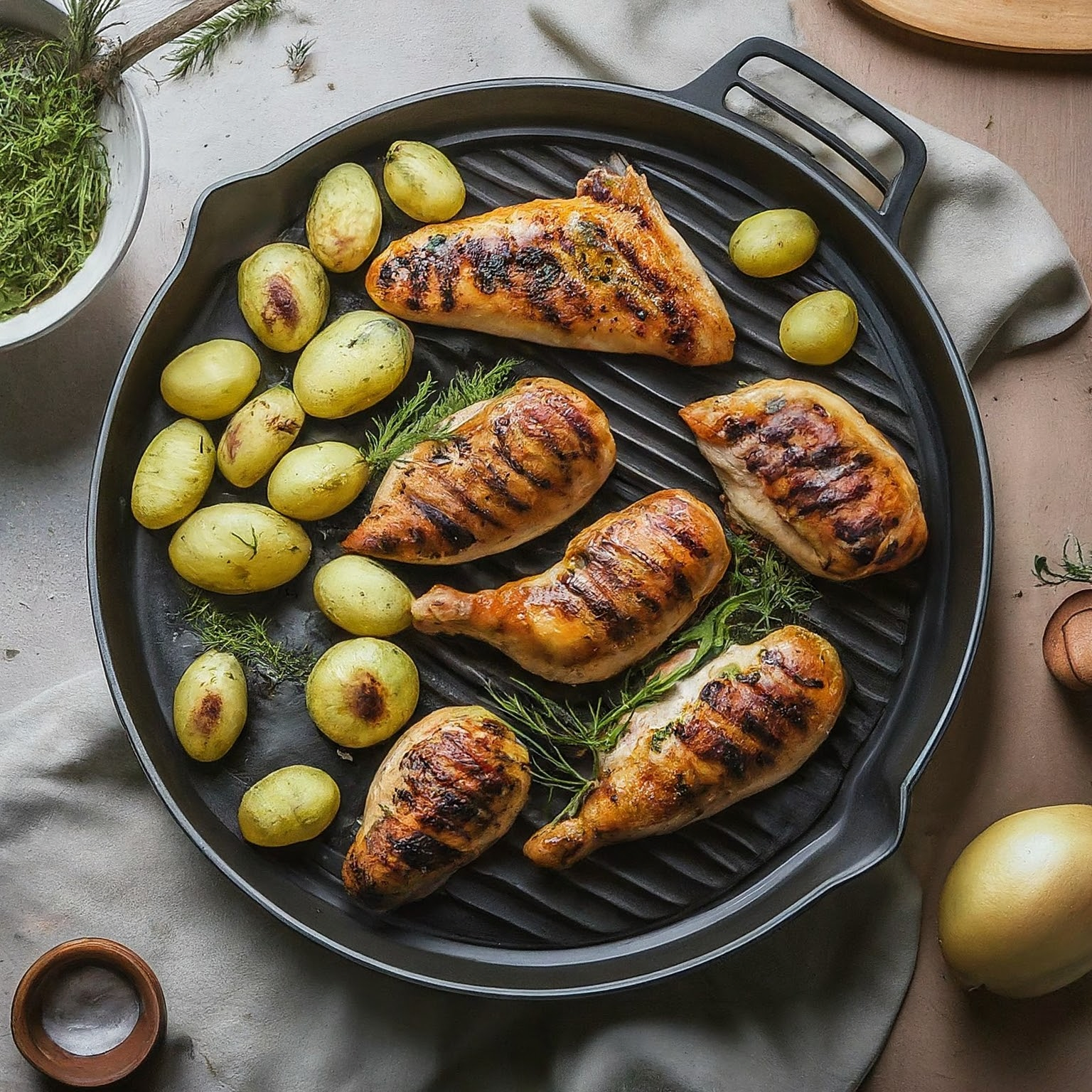 Knuspriges Hähnchen und aromatische Rosmarinkartoffeln vom Grill - ein perfektes Rezept für den Sommer!