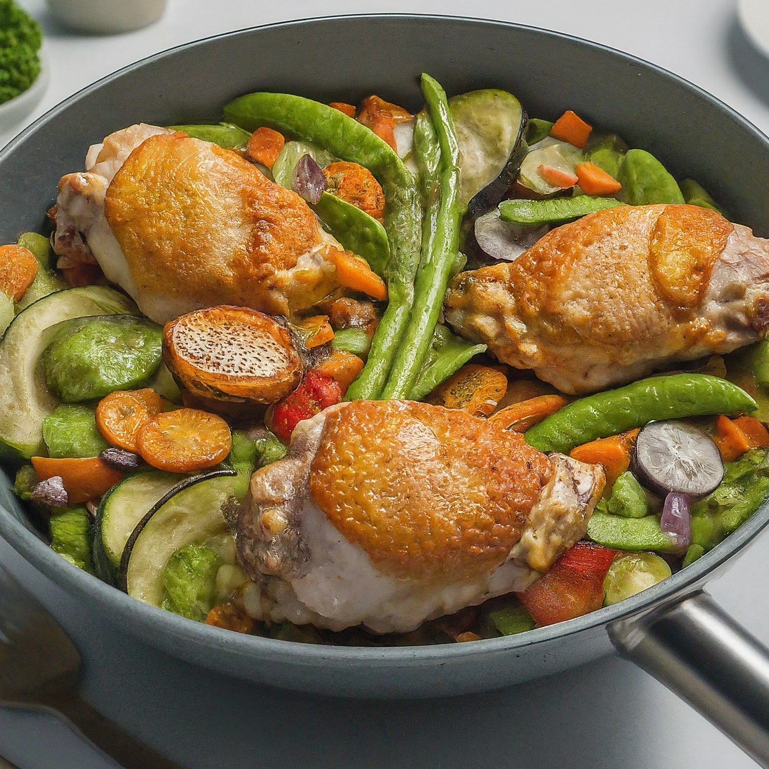 Ein schnelles und einfaches Rezept für saftiges Hähnchen mit Gemüse aus dem Airfryer. Ideal für ein gesundes Abendessen unter der Woche.