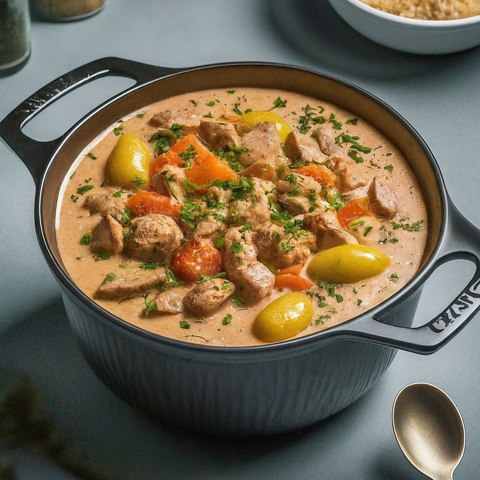 Cremiges Hühnerfrikassee, ein echter deutscher Klassiker! Dieses Rezept ist einfach zuzubereiten und perfekt für ein gemütliches Familienessen. Mit zartem Hühnerfleisch, Champignons und Erbsen in einer sämigen Sauce – ein Genuss für Groß und Klein!