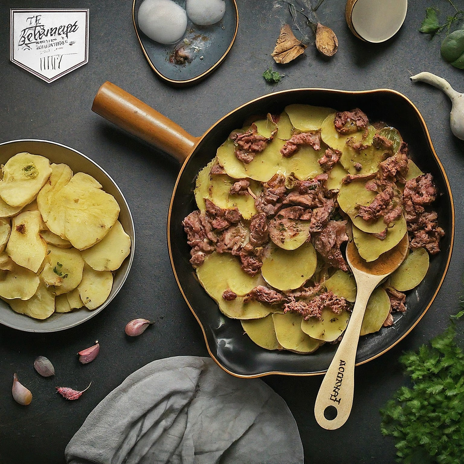 | 1. | Kartoffeln schälen, kochen und anschließend zu Püree verarbeiten. Milch, Butter, Ei, Salz, Pfeffer und Muskatnuss unterrühren. |