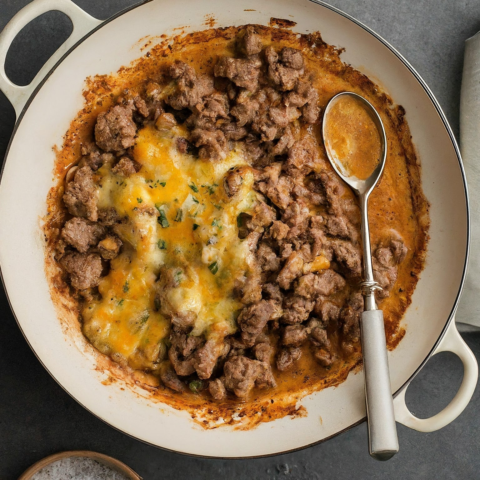 Ein klassischer Hackfleisch-Auflauf mit cremiger Sauce und überbacken mit Käse – perfekt für die ganze Familie!