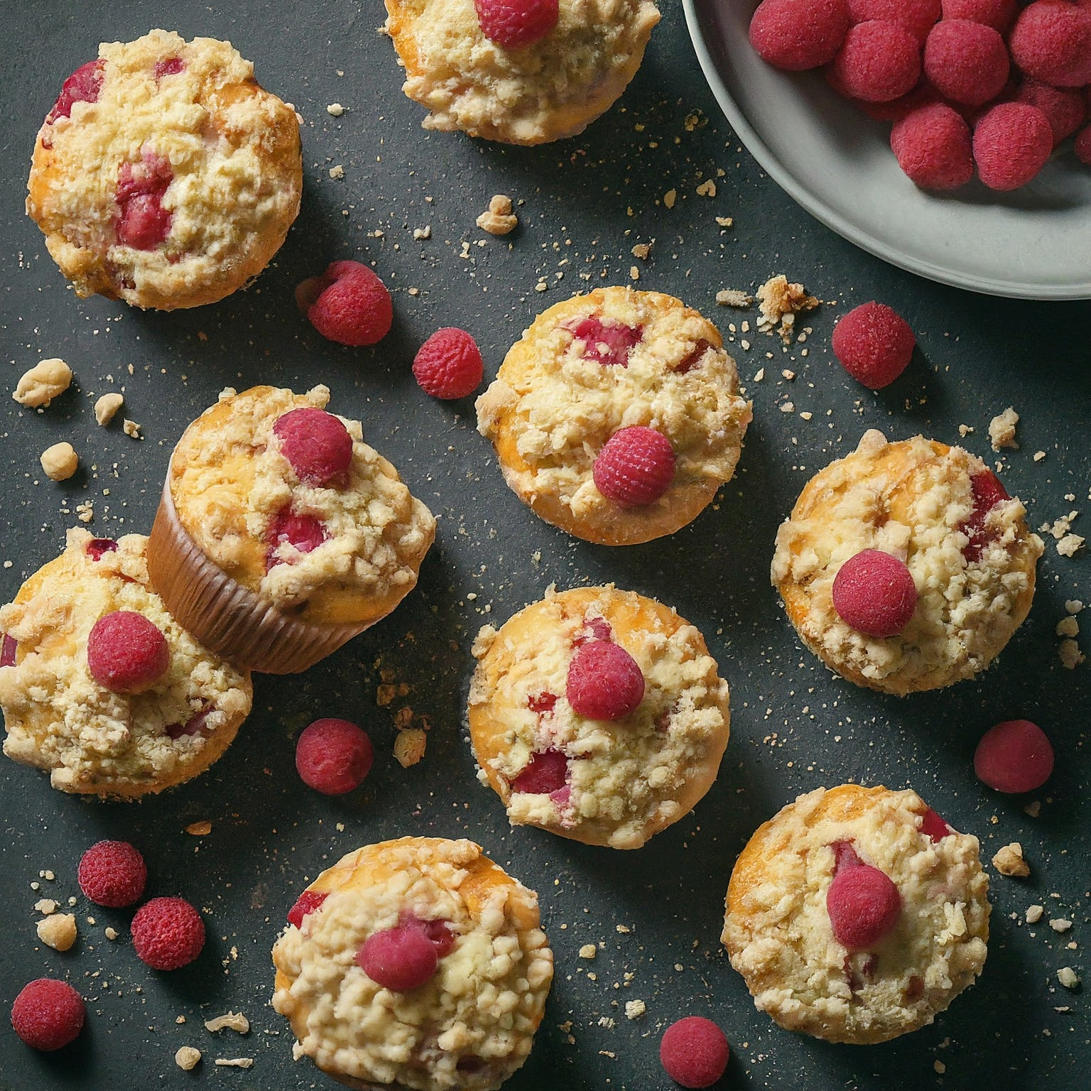 Saftige Himbeer Muffins mit knusprigen Streuseln - ein einfaches Rezept für einen fruchtigen Genuss!