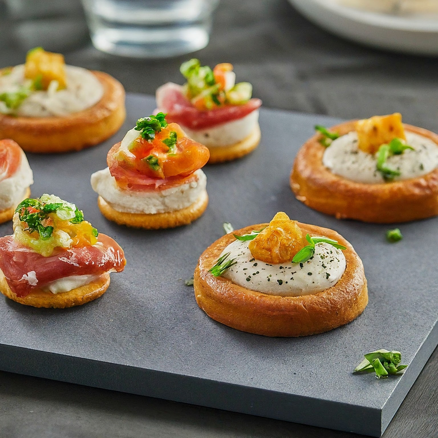 | 4. | Cracker, Käse, Früchte und Nüsse auf einer Platte ansprechend anrichten. |