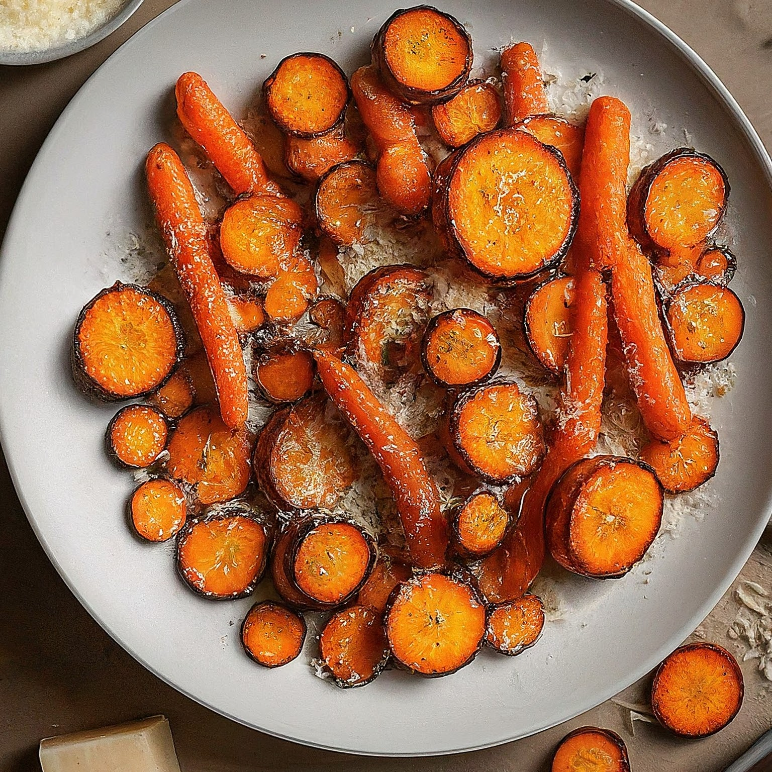 Knusprige Karotten aus dem Airfryer mit Parmesan und Knoblauch – ein einfaches und gesundes Rezept für Beilage oder Snack.