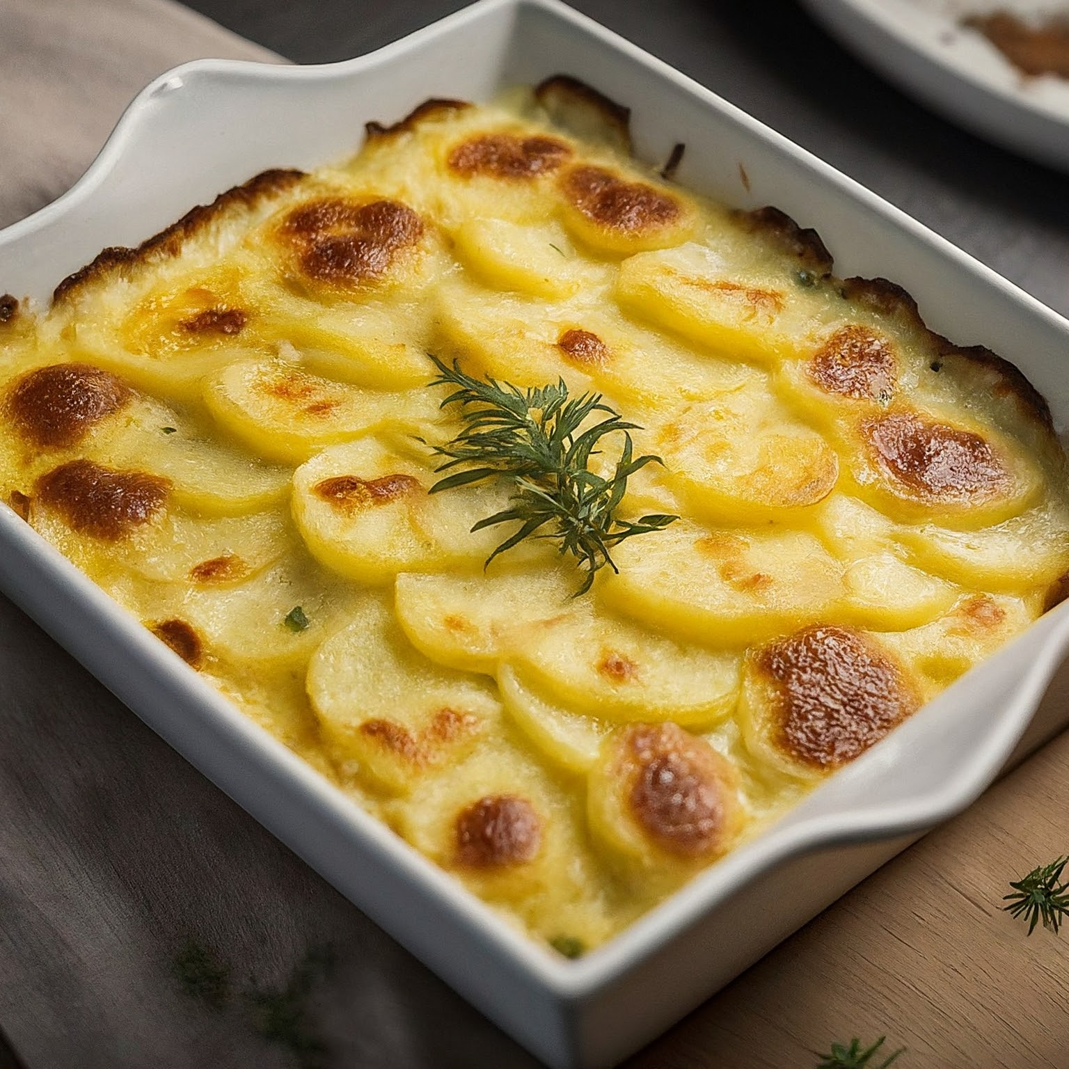 Unwiderstehlich cremiges Kartoffelgratin – ein Klassiker, der immer gelingt. Zarte Kartoffelscheiben in Sahnesoße überbacken mit Käse.